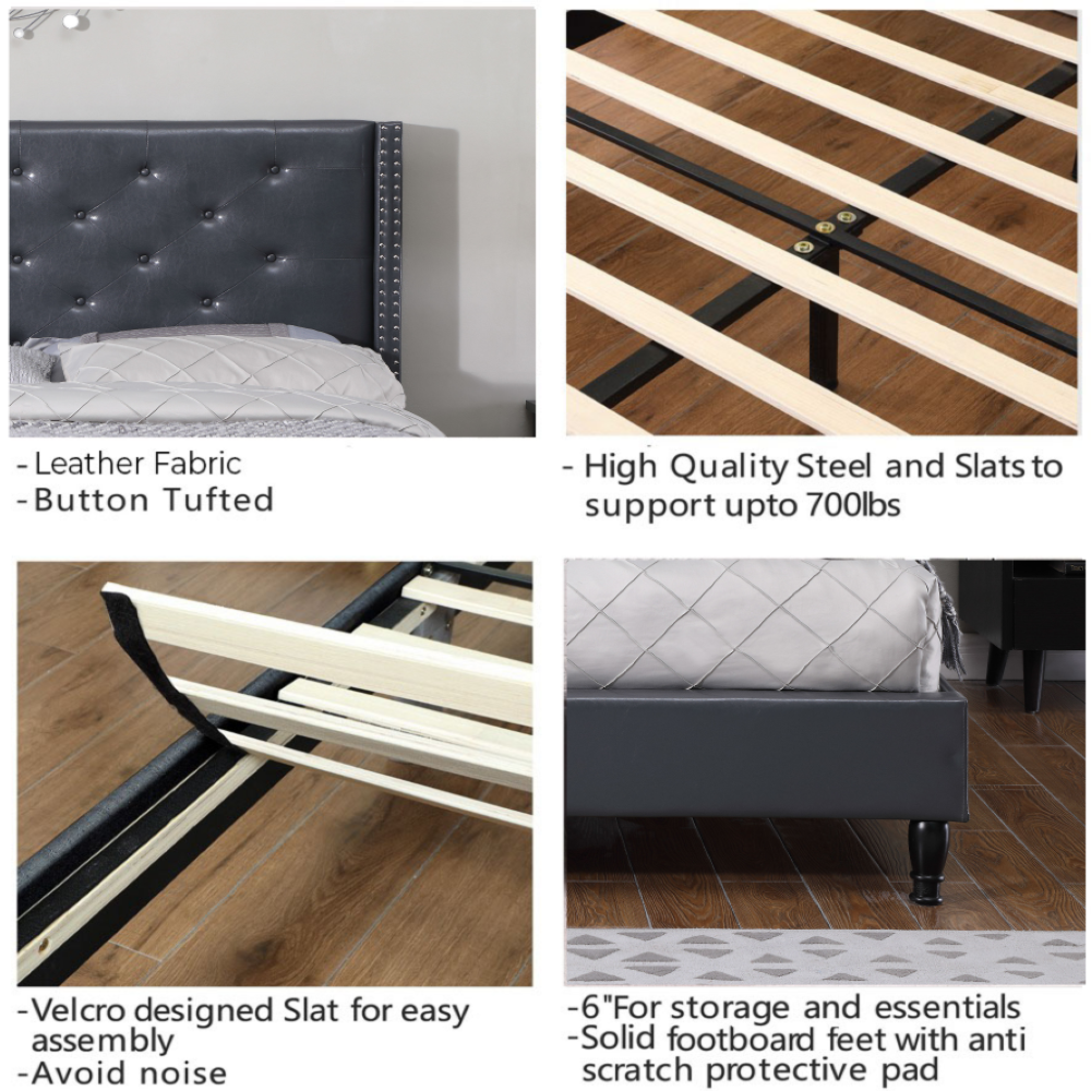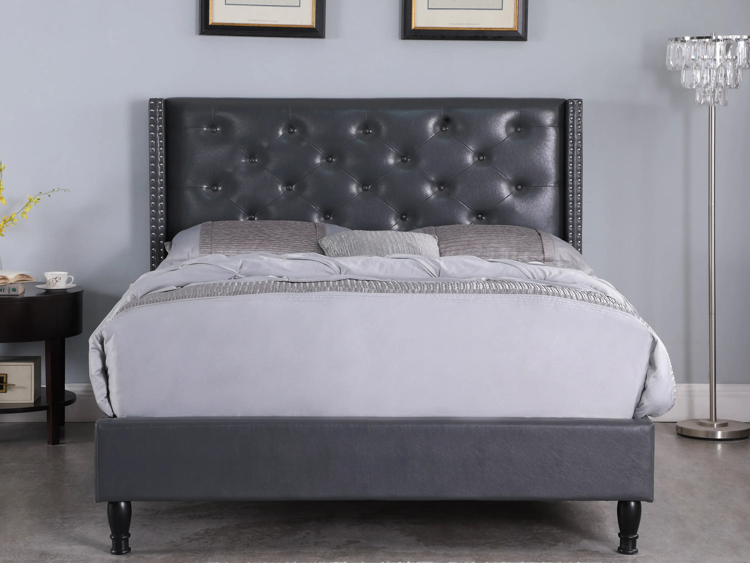 Astor - 51" High Headboard Leather Platform Bed Frame