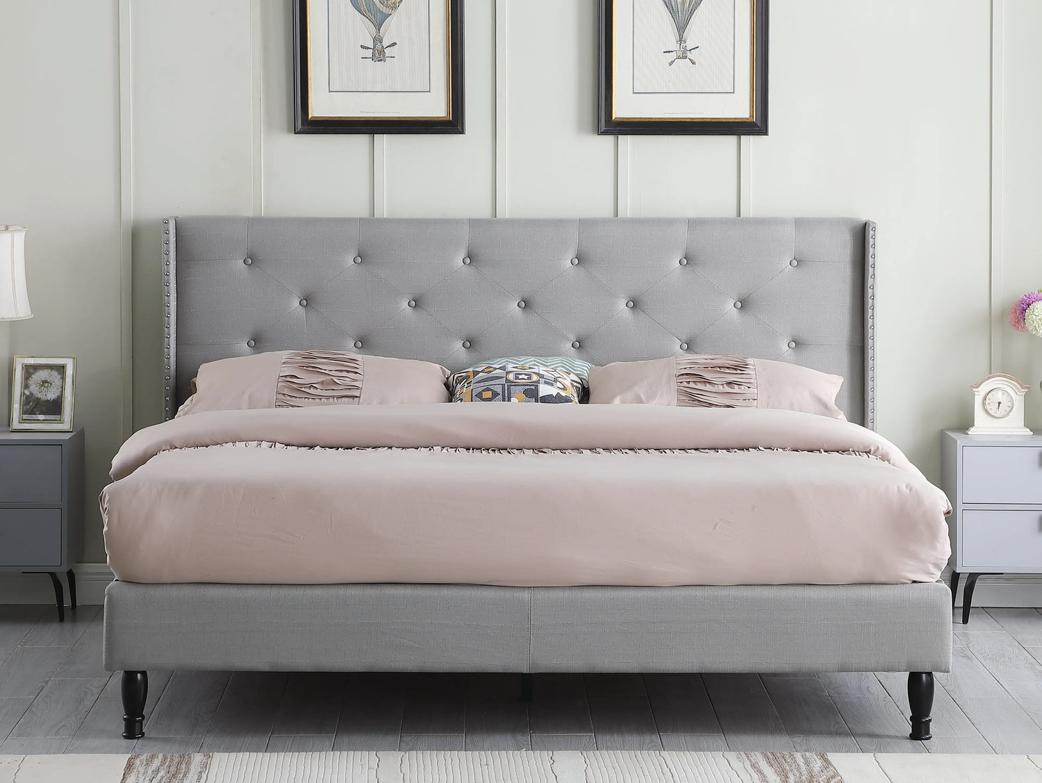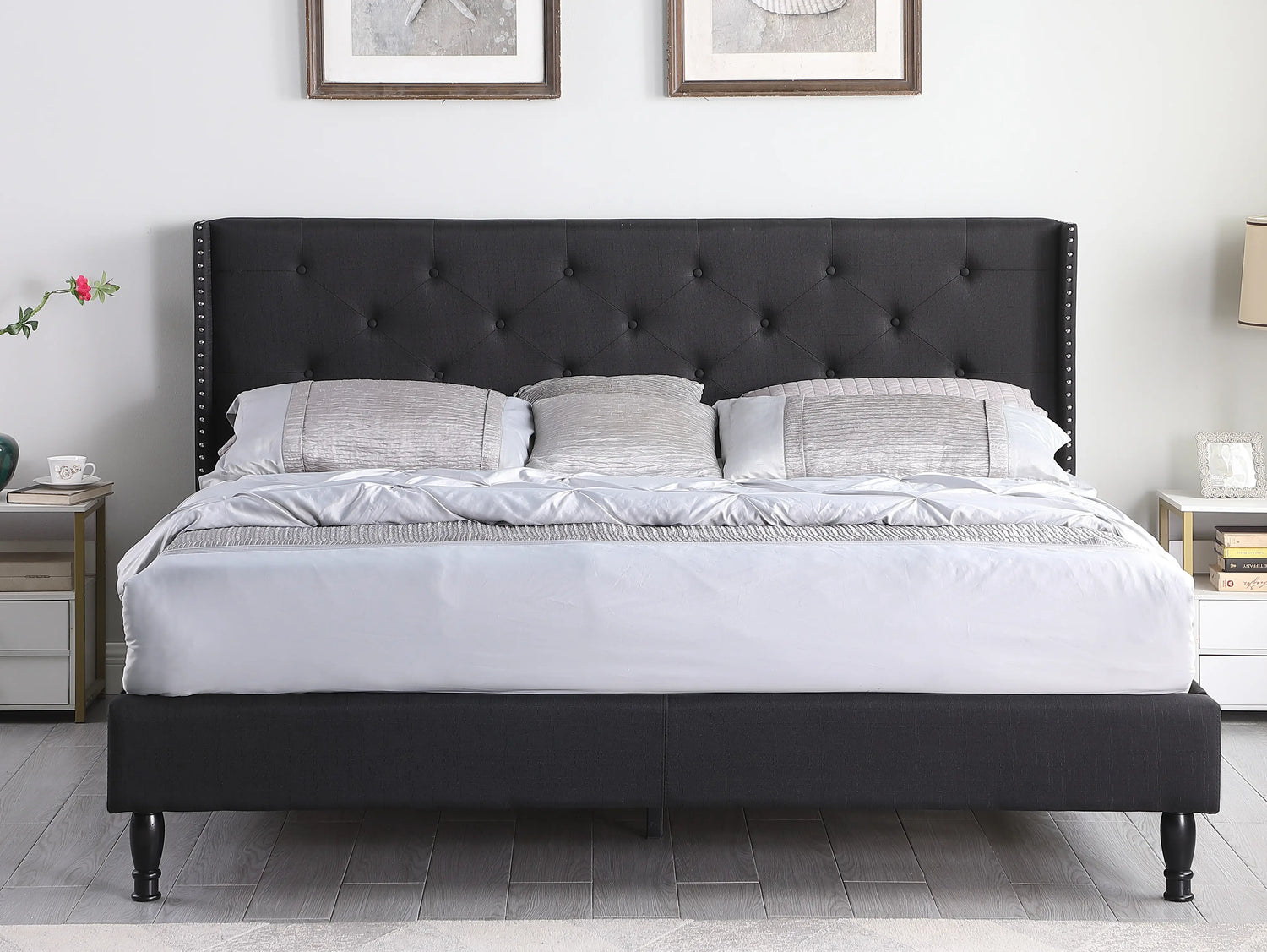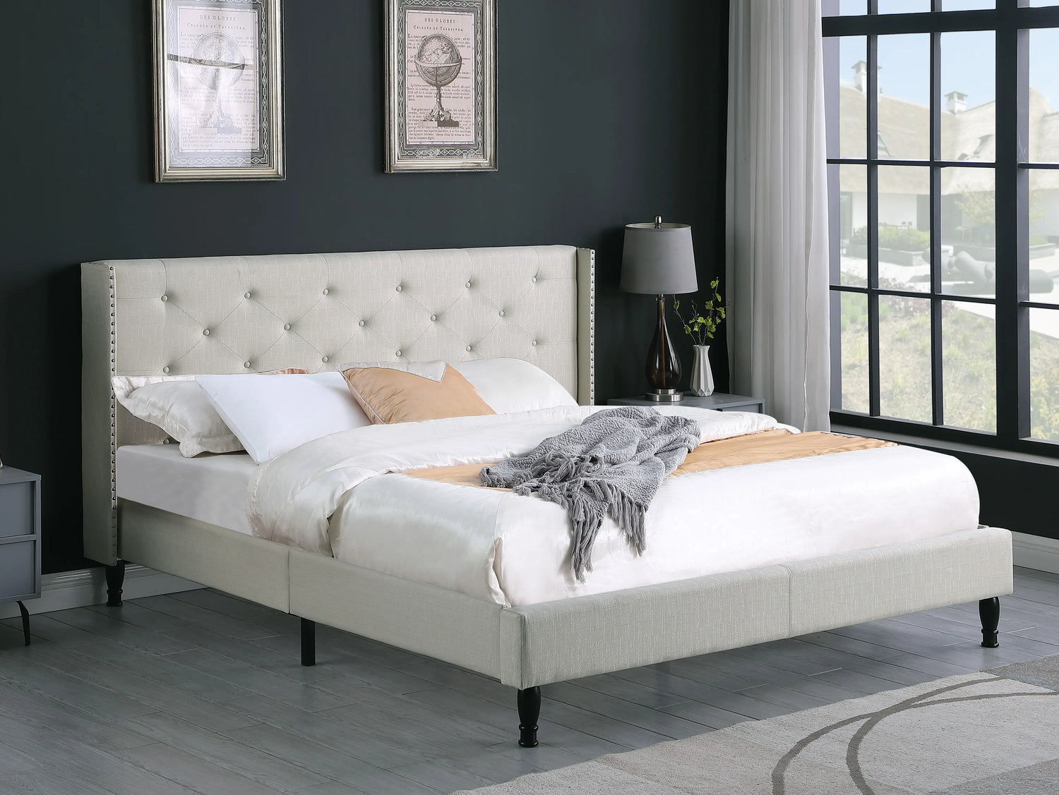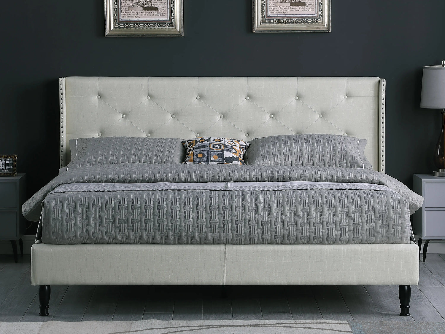 • 45" tall headboard linen cloth platform bed frame.