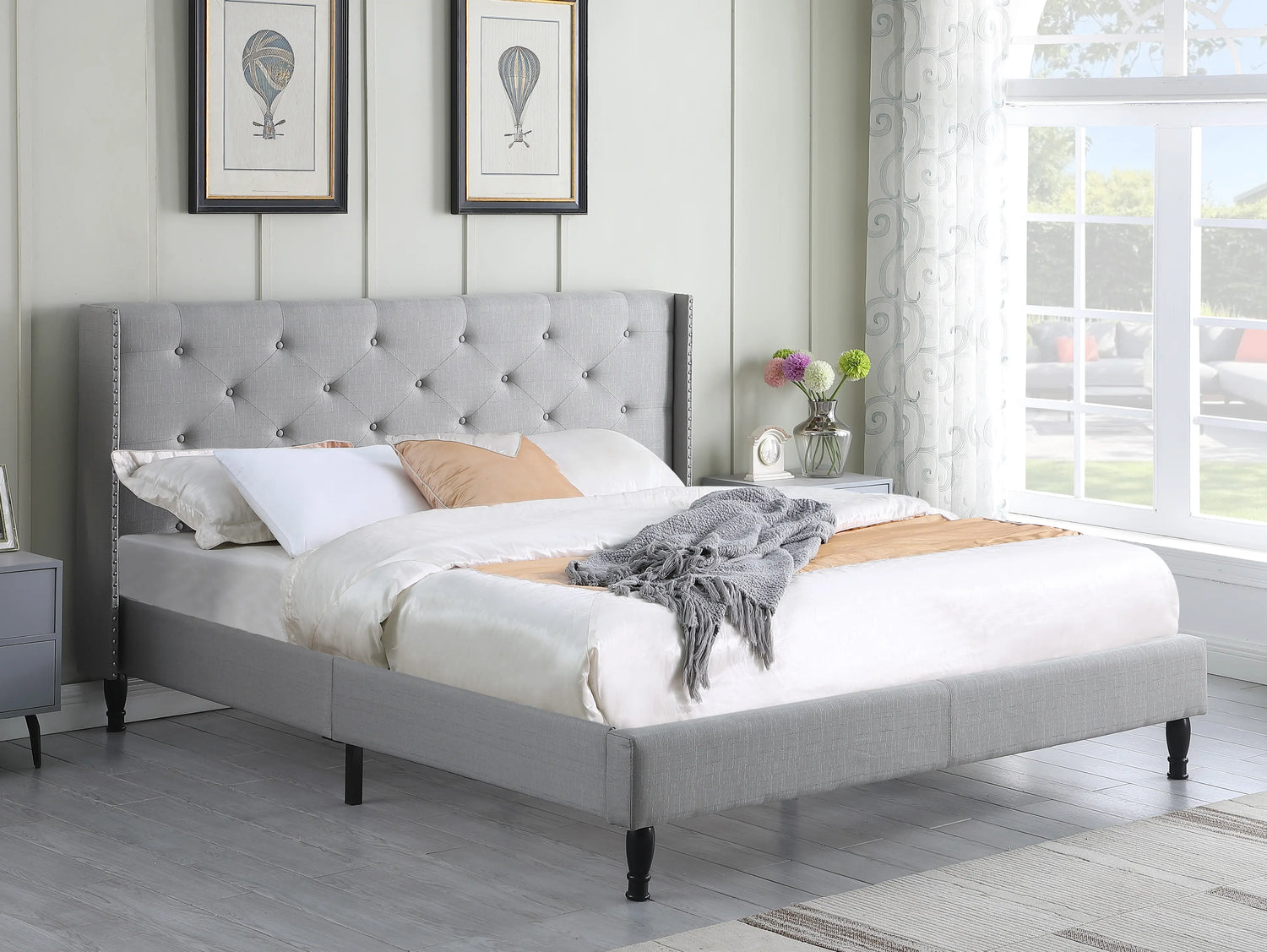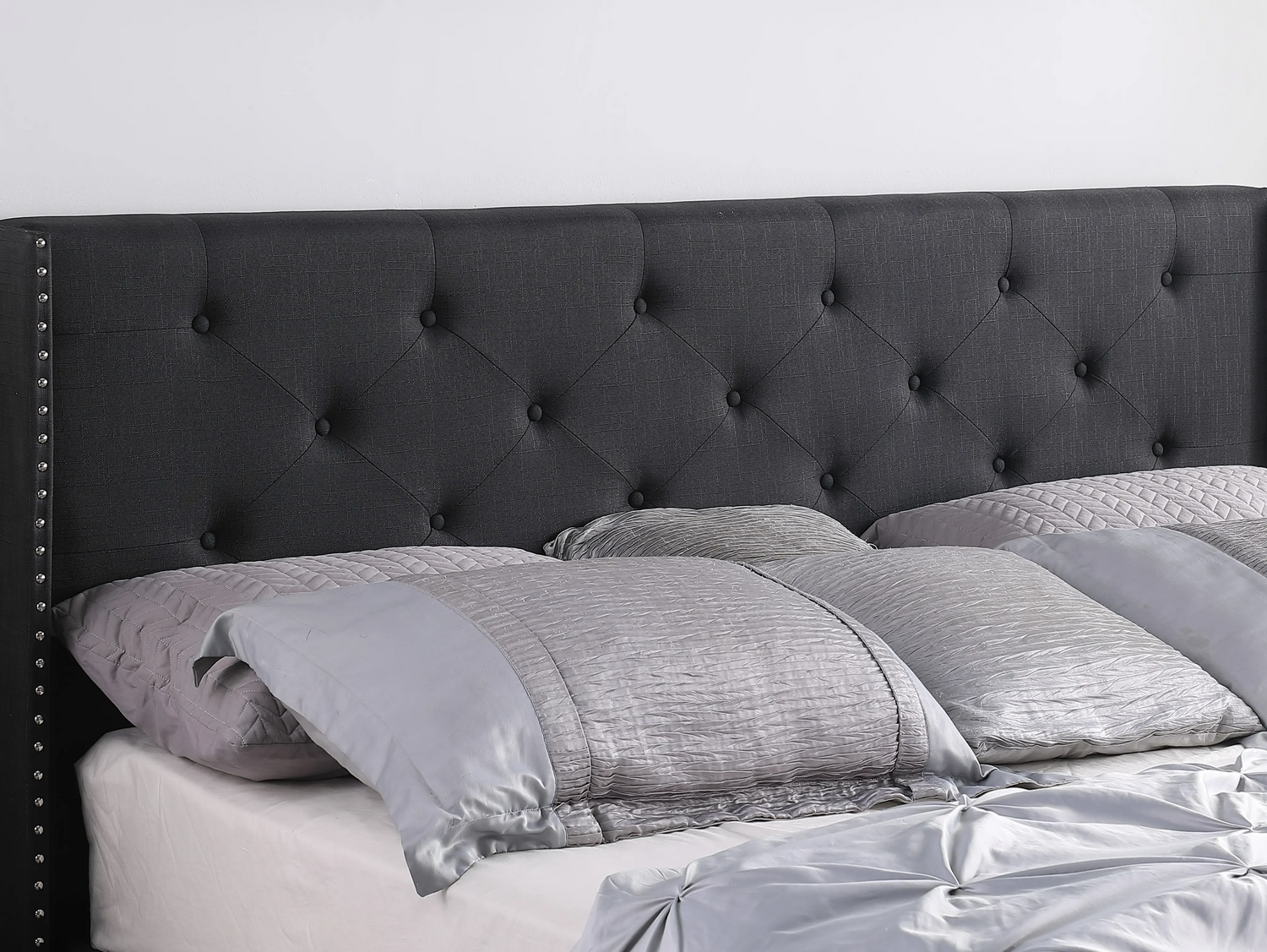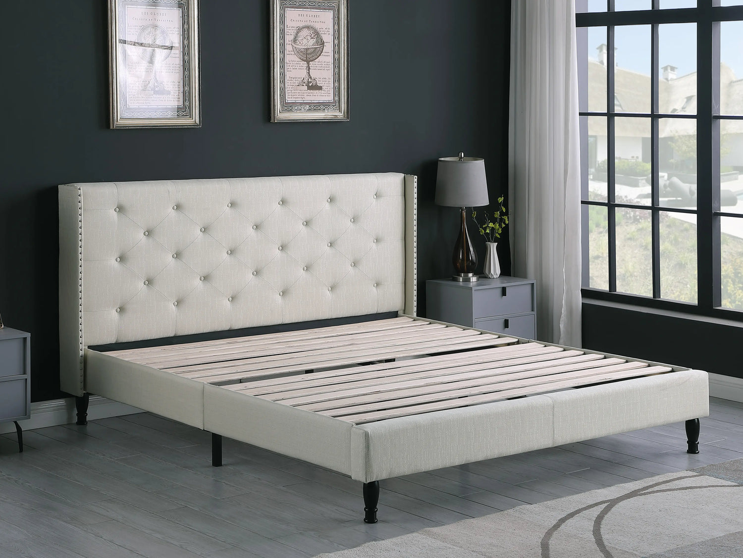 • 45" tall headboard linen cloth platform bed frame.