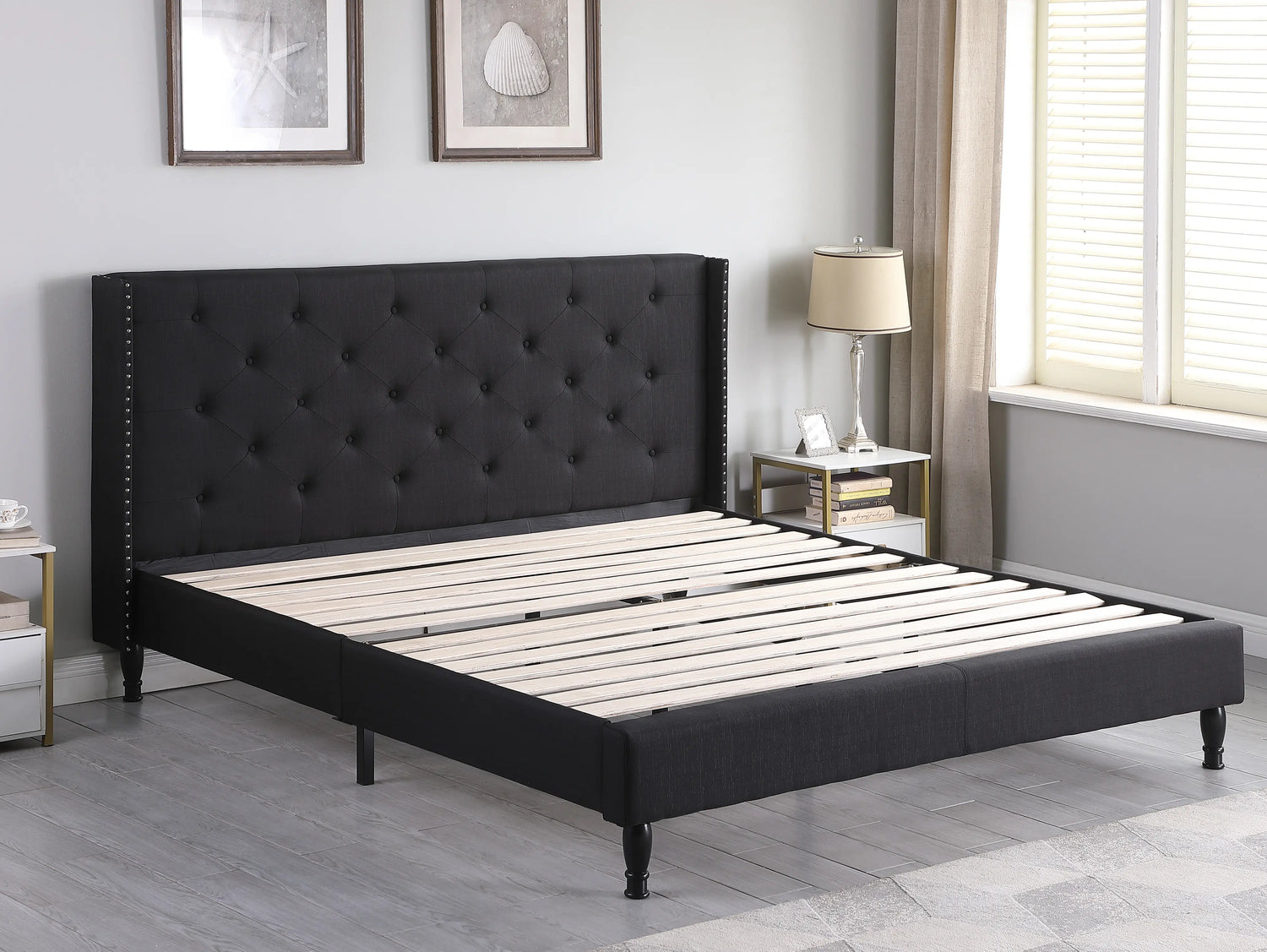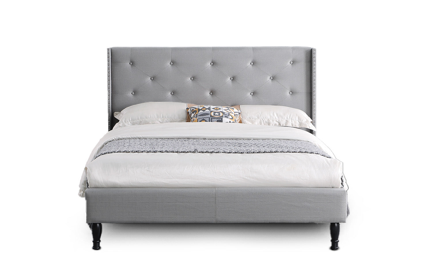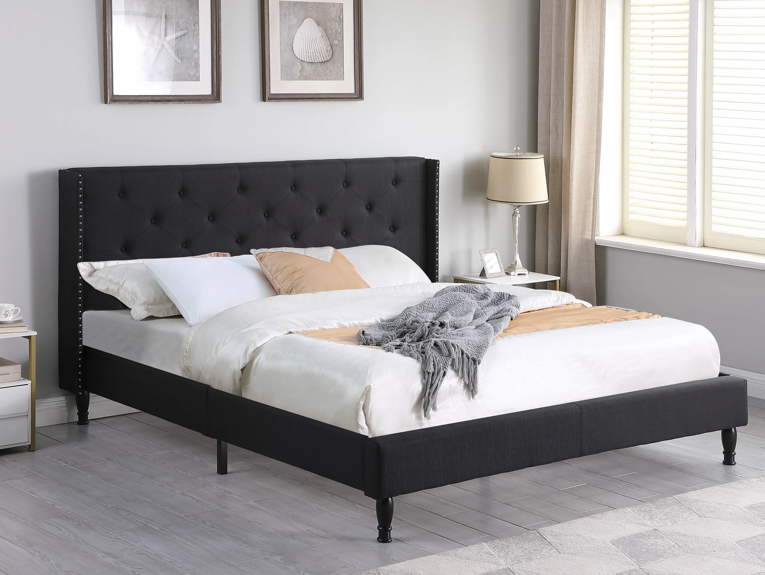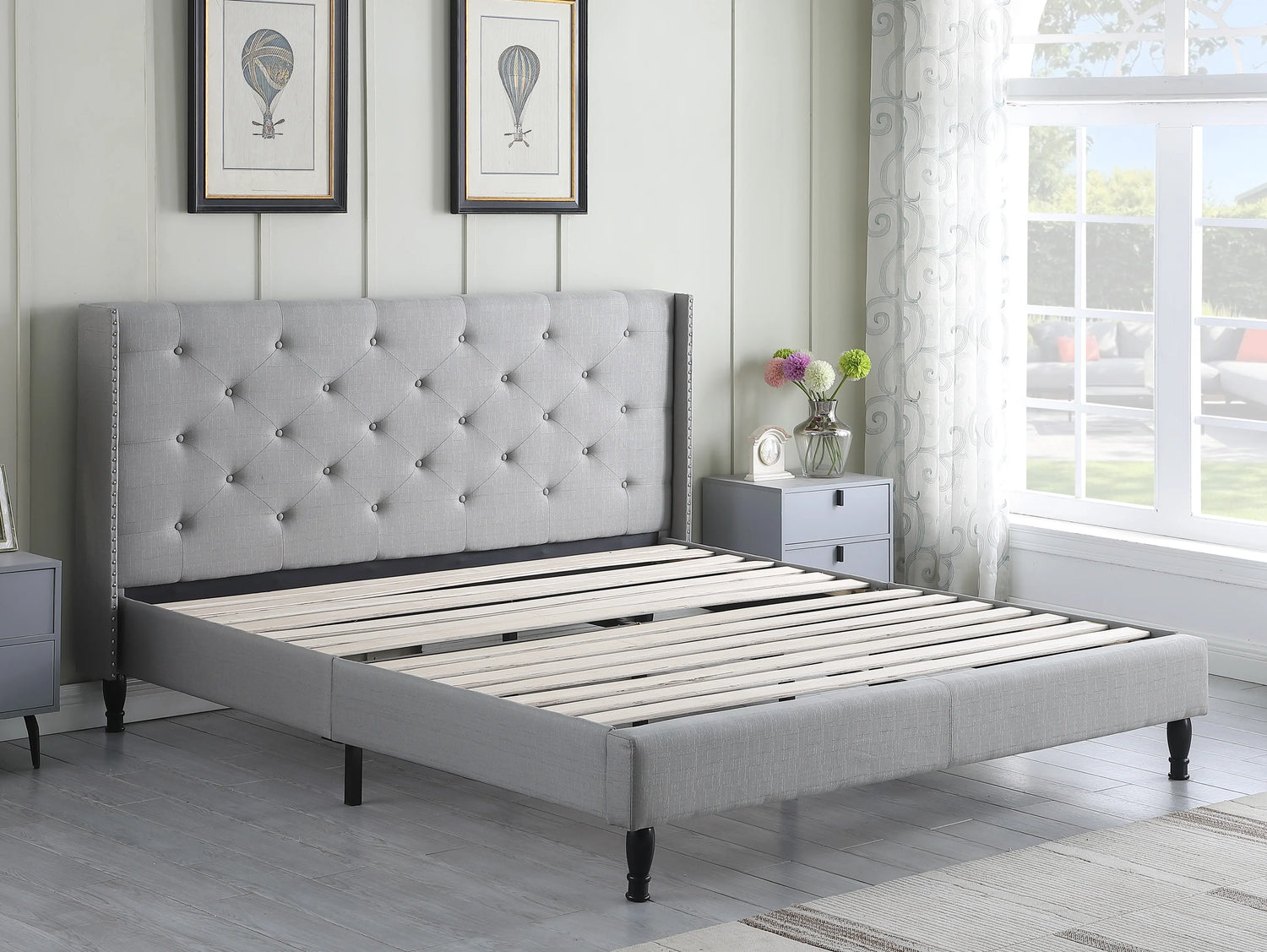 • 45" tall headboard linen cloth platform bed frame.