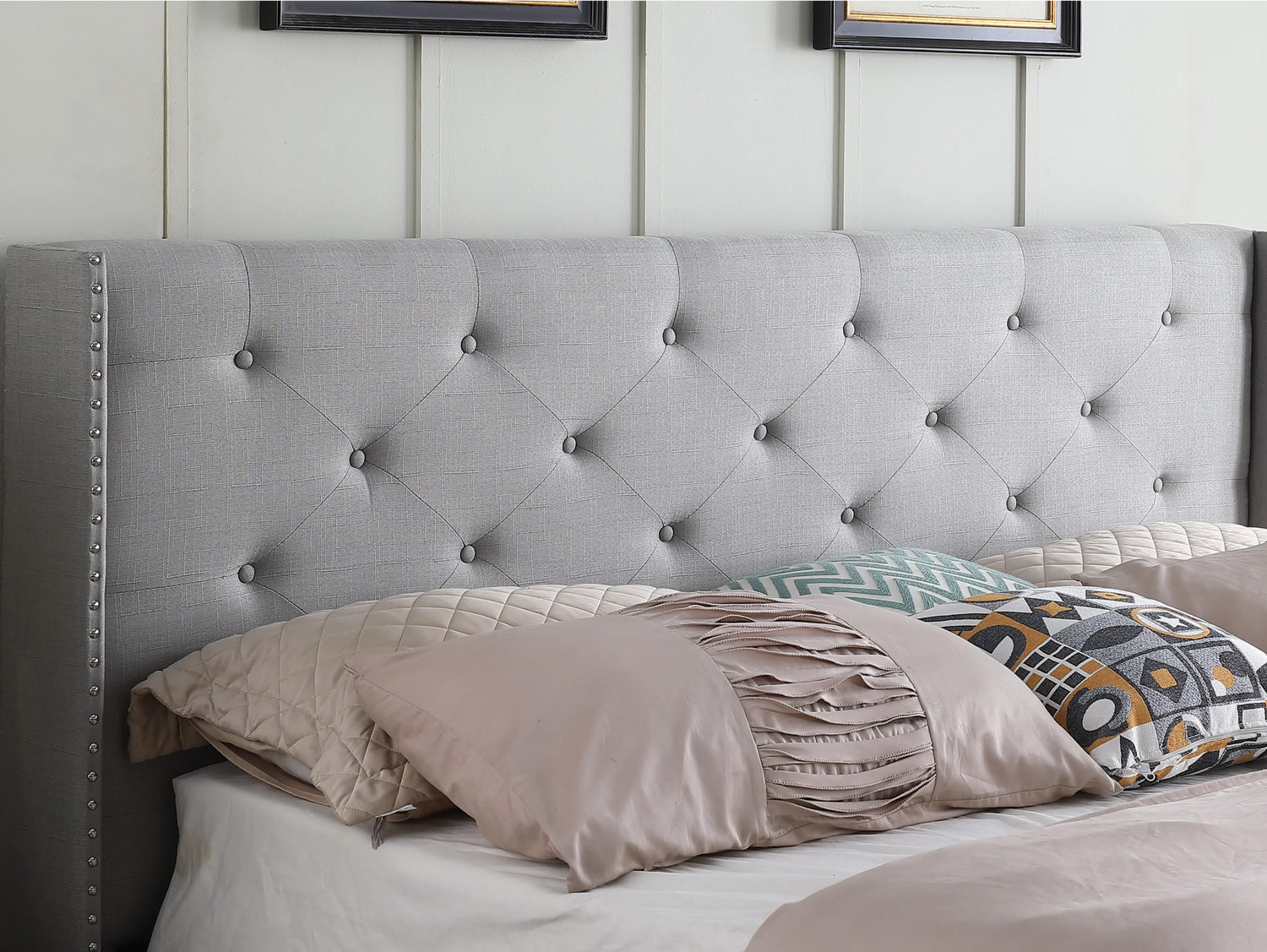 Kendall - 45" Tall Headboard Linen Cloth Platform Bed Frame