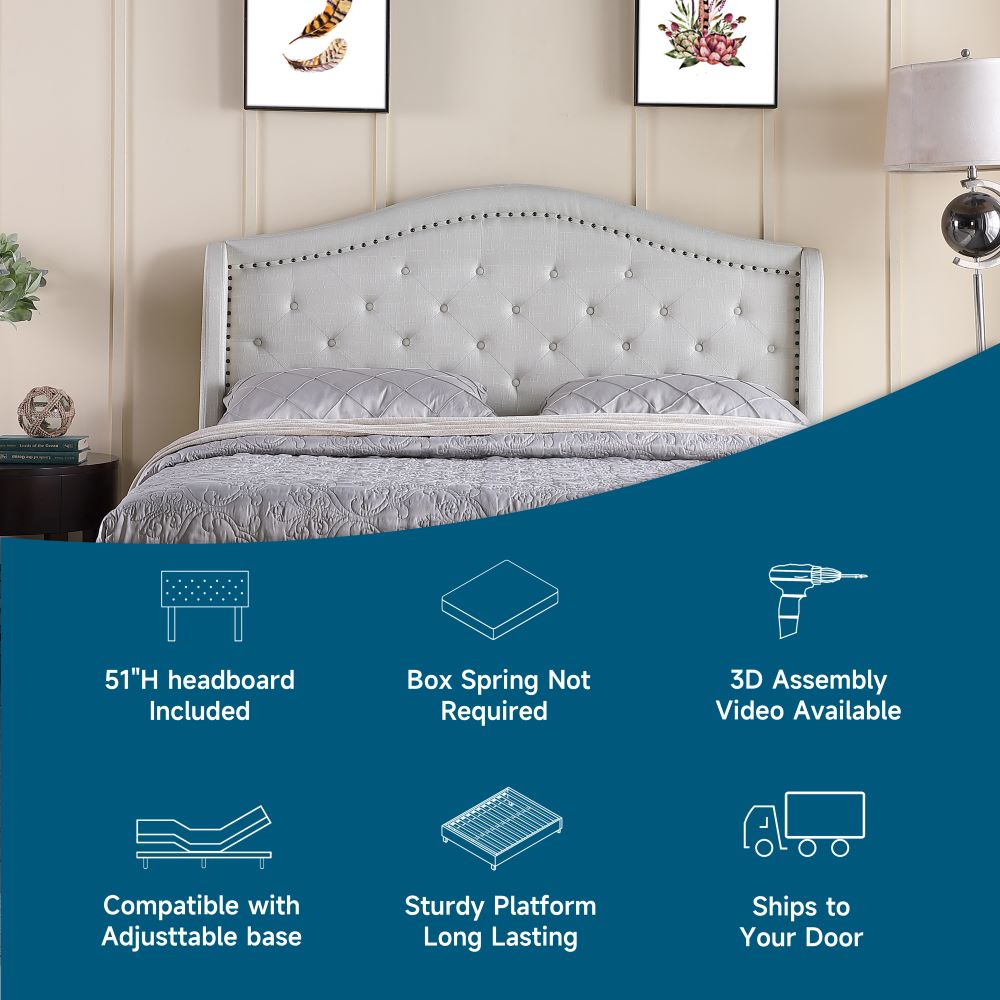 Monroe - 51" Inches Headboard Linen Platform Bed Frame