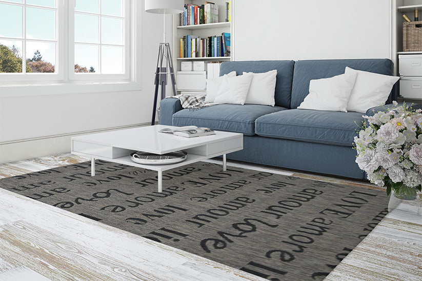 Jute Collection® Grey Love All-Over Design Jute Area Rug