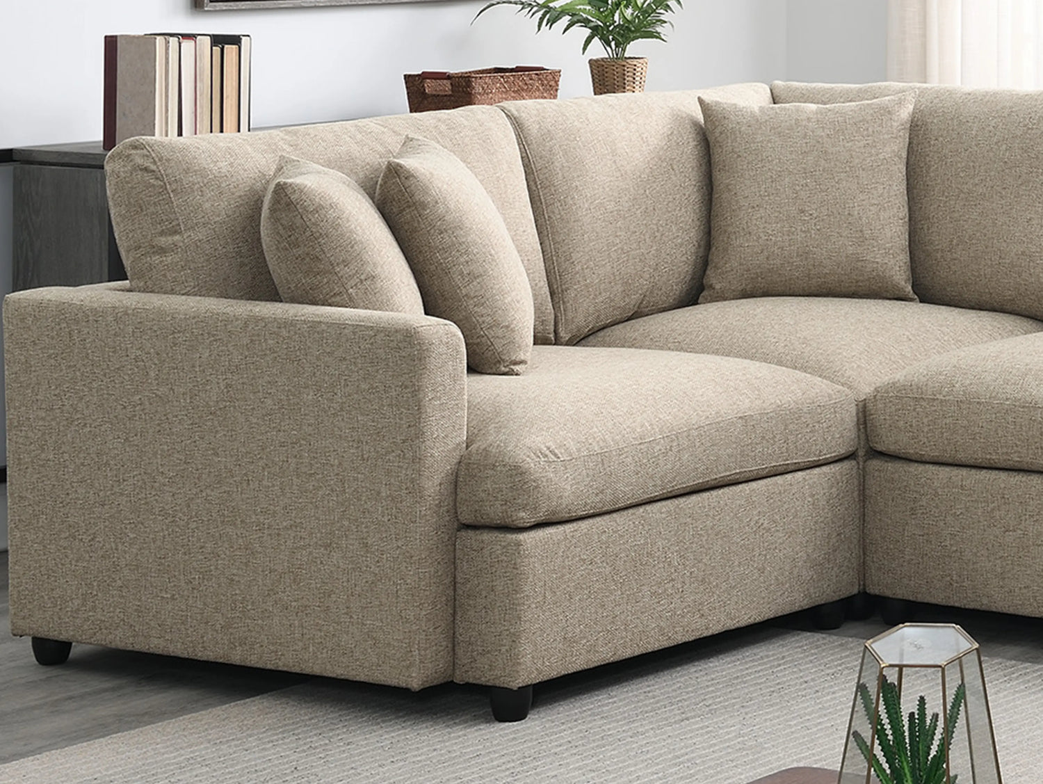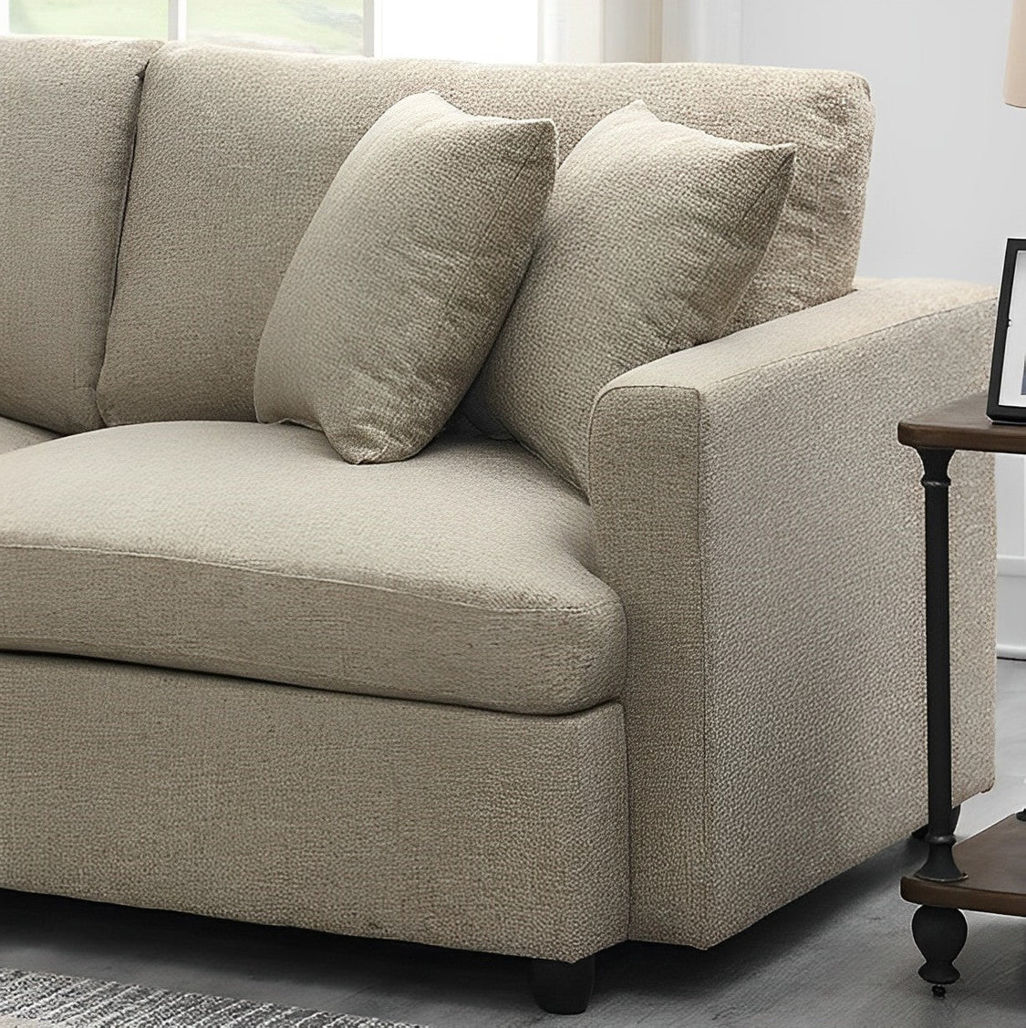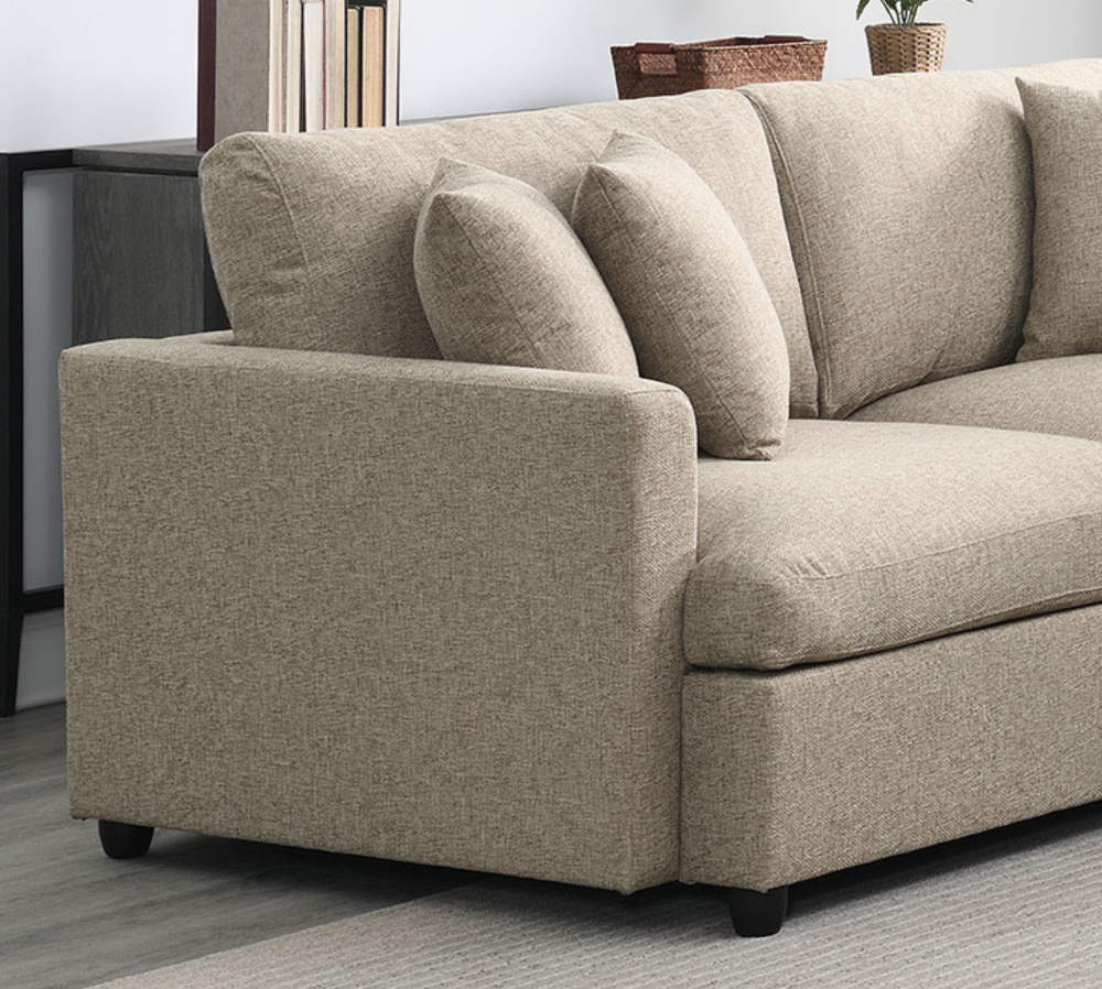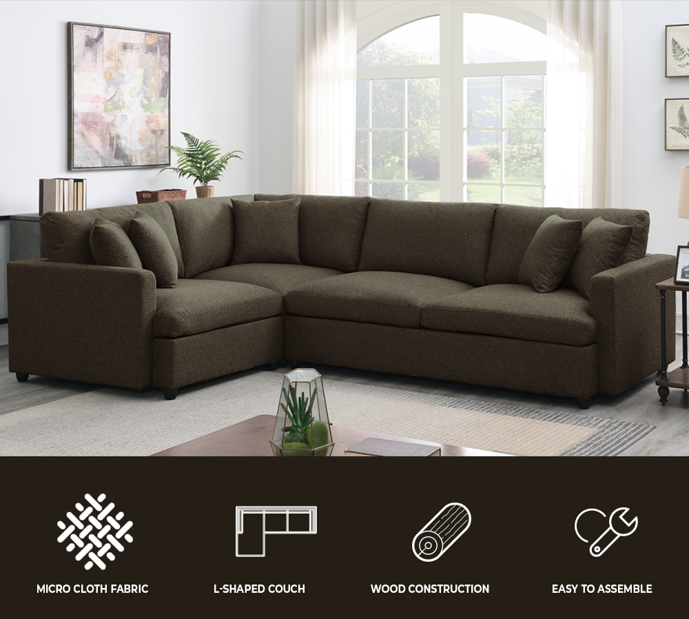 - Upholstered 3-piece sectional couch with neat lines.