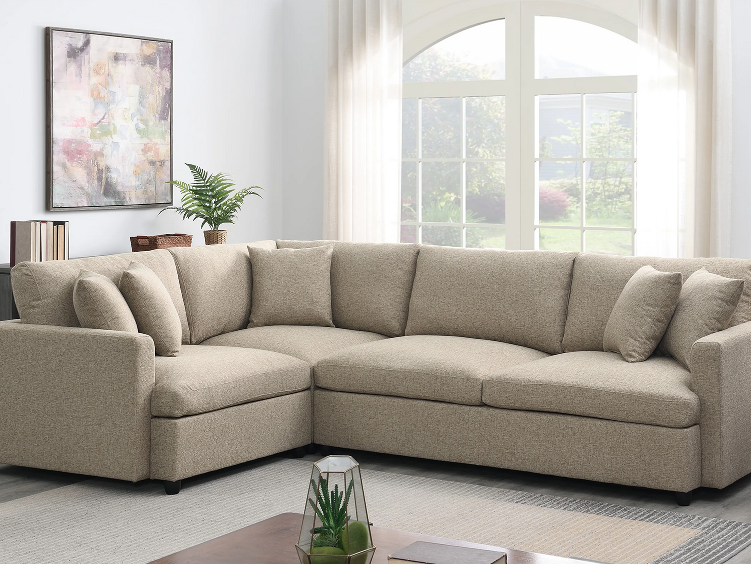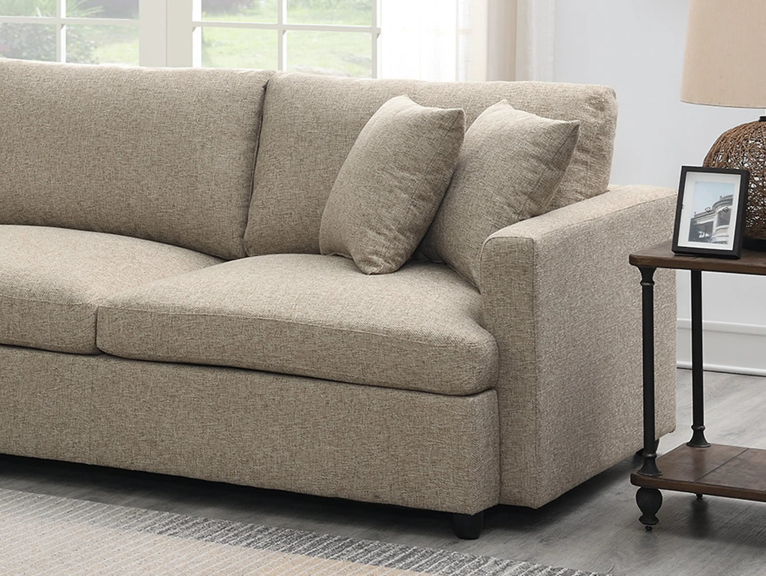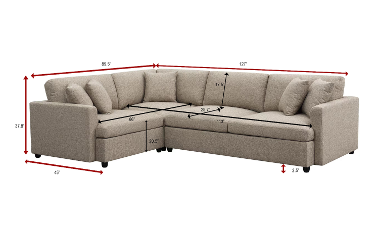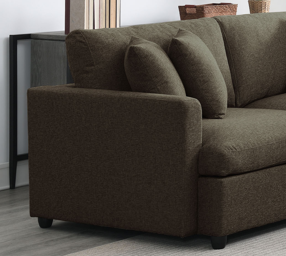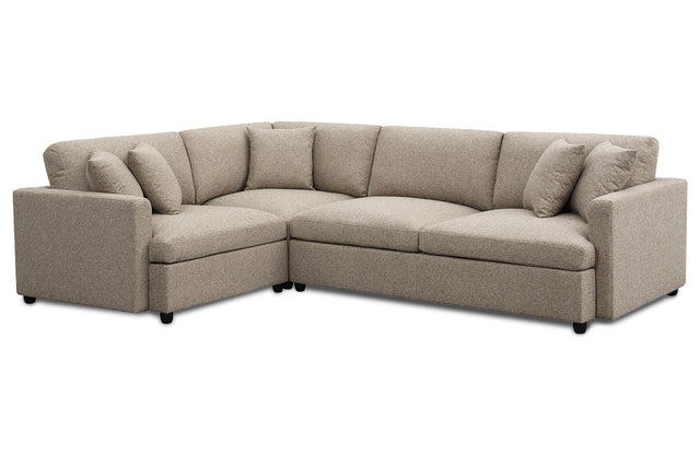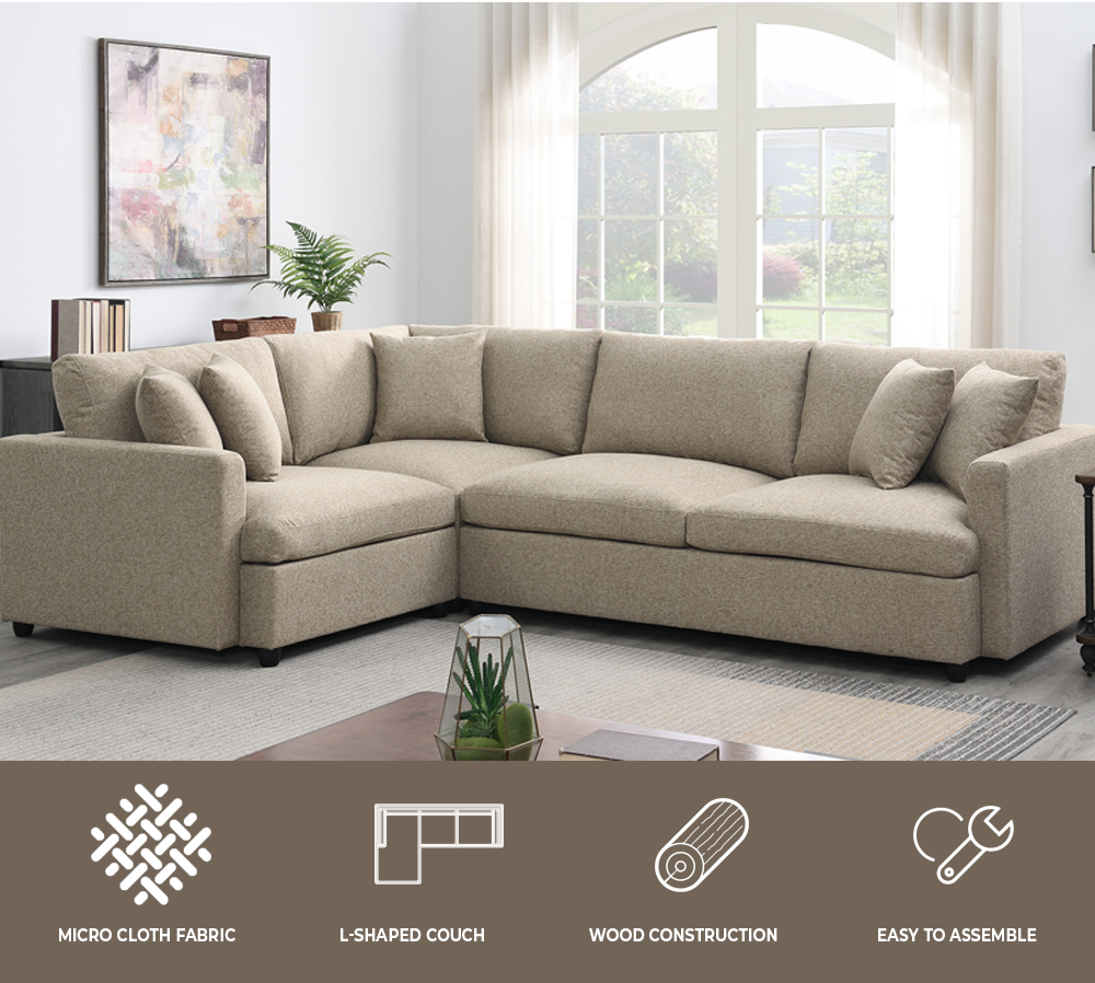- Upholstered 3-piece sectional couch with neat lines.
