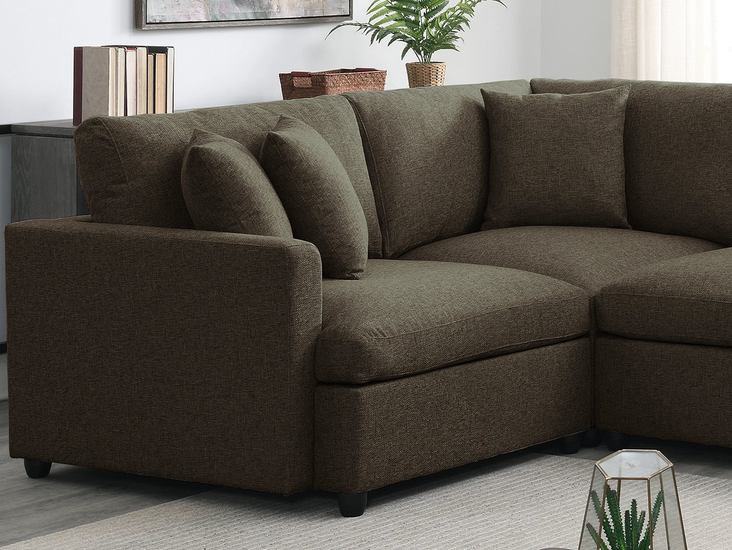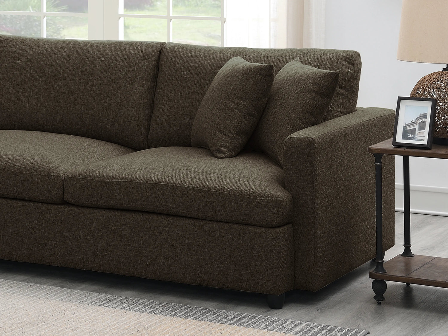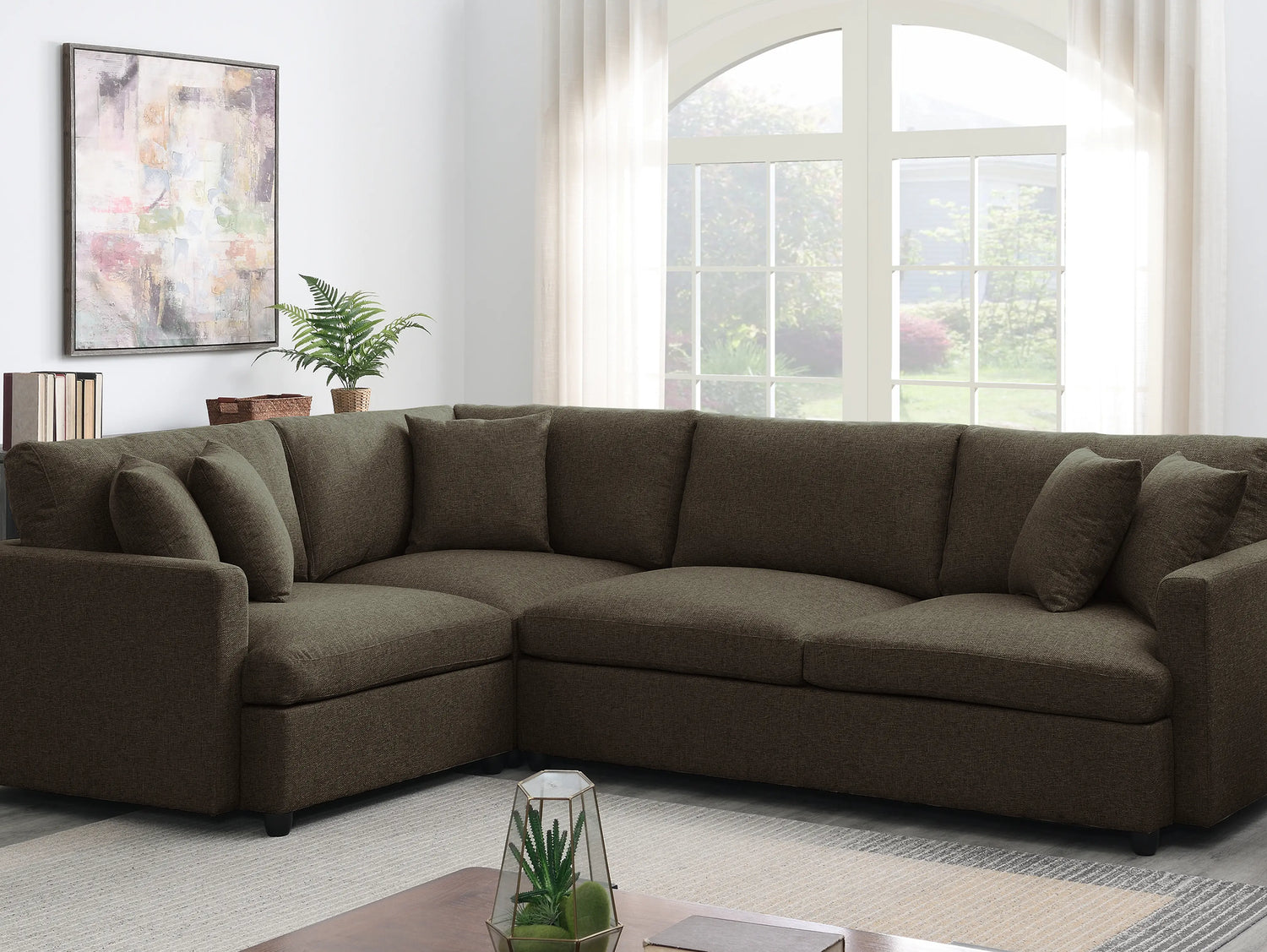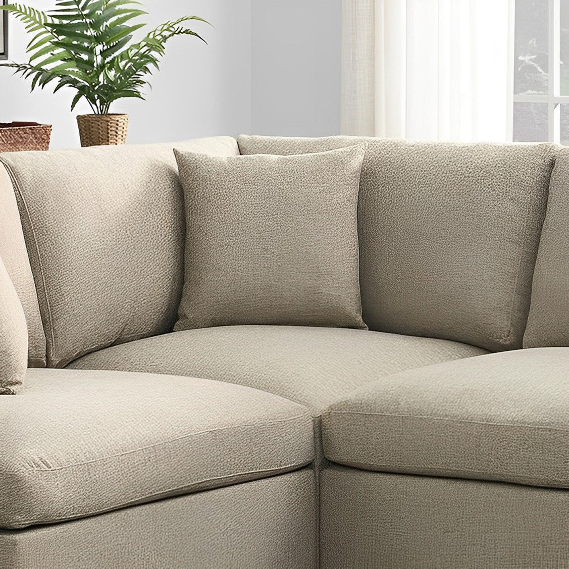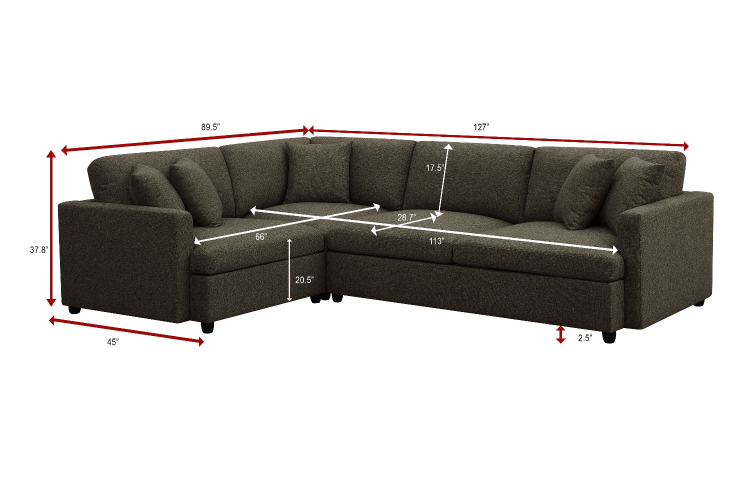- Upholstered 3-piece sectional couch with neat lines.