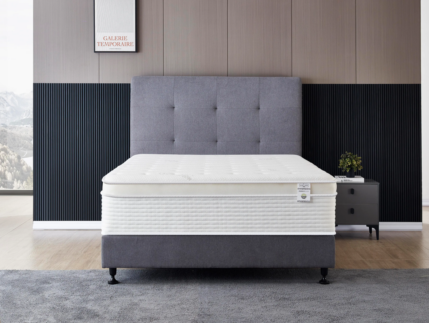 - 1,100 Independently pocketed 15-gauge pocket spring coils.